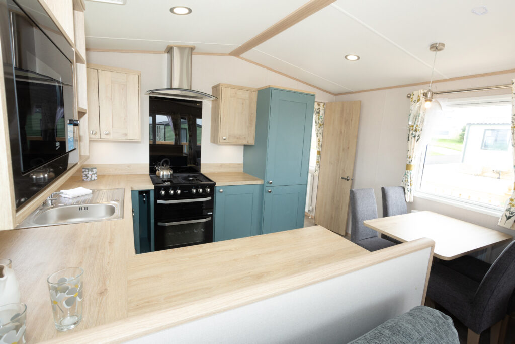 Our review unit is equipped with voiles; another extra. Both of these features significantly add to the ABI Roecliffe’s appeal as you sit in the lounge and take in the view from the patio doors and large windows. In the case of our review model, it’s a fantastic seascape vista that really encapsulated the appeal of owning a holiday caravan.